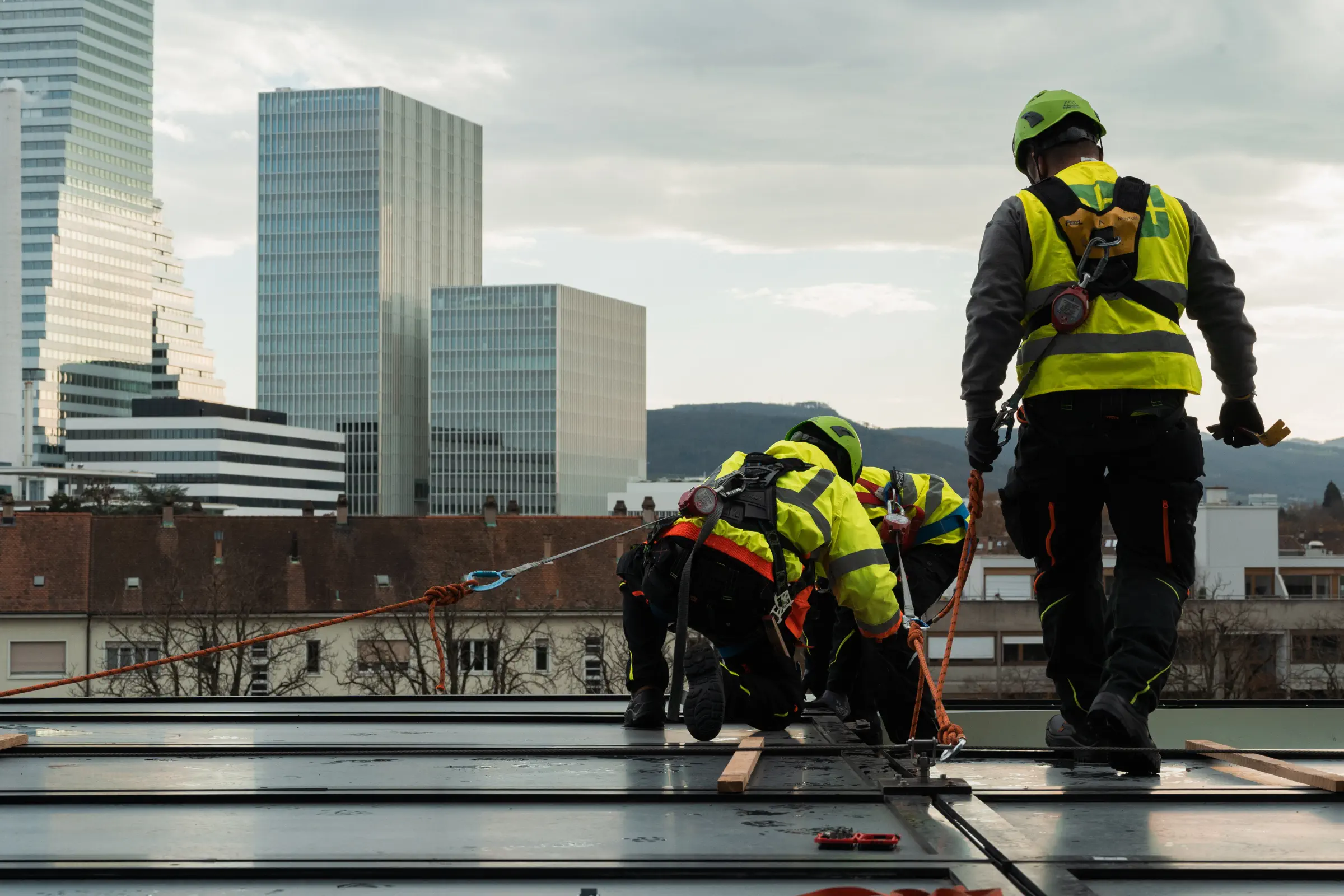 Für die umfassende Sanierung des Vordachs am Messeturm in Basel führte der Spengler wichtige Sanierungsarbeiten aus. ph+ wurde unterstützend mit der Demontage, Anpassung, Instandstellung und Remontage der begehbaren, horizontalen Glaselemente auf der rund 1'000 m² grossen Dachfläche beauftragt.